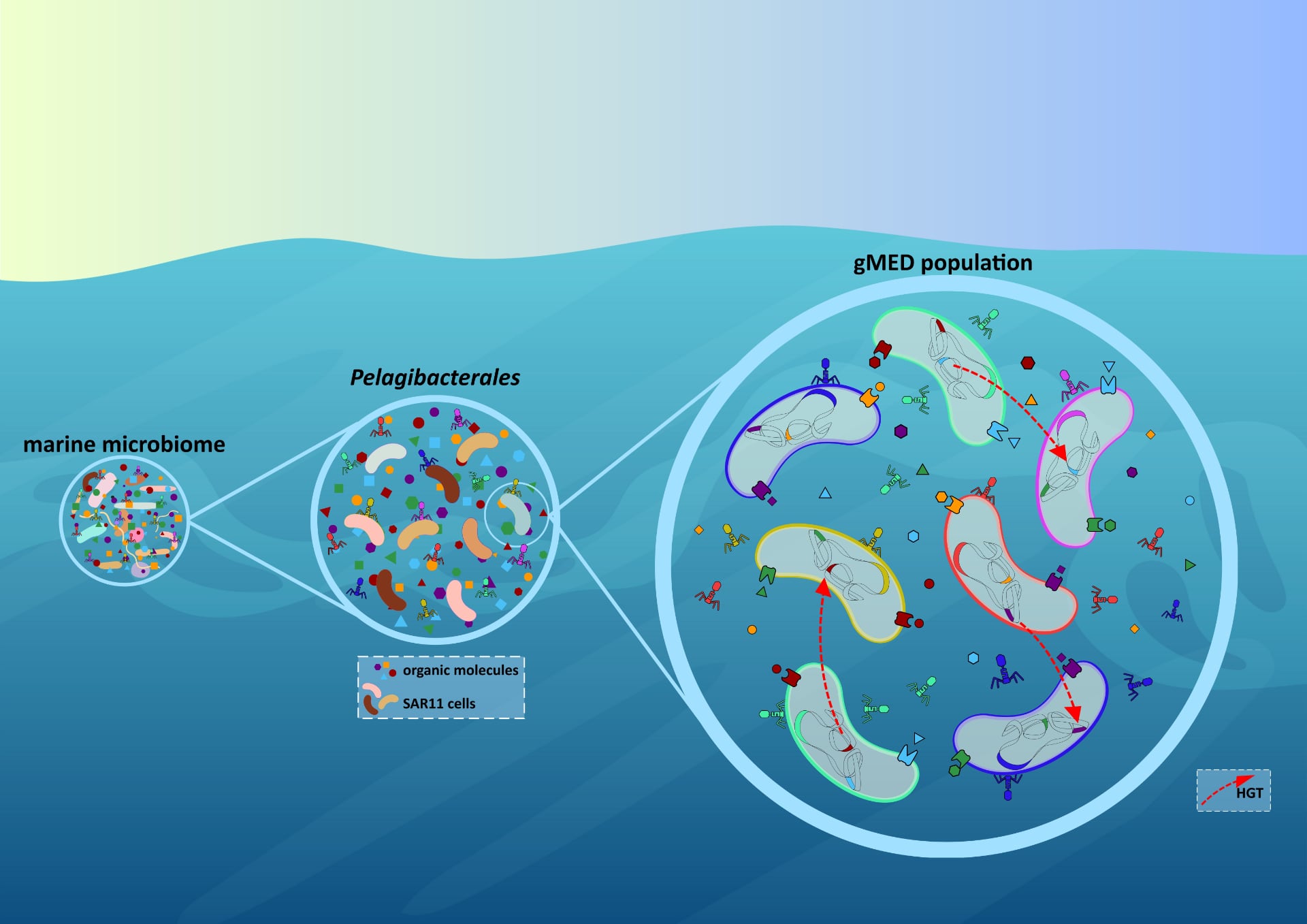 Population-level strategies that drive the ecological and evolutionary success of SAR11 in nutrient-limited marine environments. In oligotrophic ocean surface waters, where organic and inorganic nutrients are scarce, Pelagibacterales (SAR11 clade) has evolved under the principles of streamlining theory, including a reduced surface-to-volume ratio, resulting in very small cell sizes, as well as compact, highly efficient genomes. Beyond these individual adaptations, our findings reveal a complex population-level strategy that enhances evolutionary success. Conserved genomic location of variable regions facilitate homologous recombination of small DNA fragments, preserving core functions while maintaining functional redundancy within genomic islands (GIs). This redundancy sustains a vast environmental gene pool, particularly for nutrient transport, enabling broad substrate assimilation. Additionally, accessory genes within GIs enhance metabolic versatility, expanding the range of utilizable nutrients. As a result, SAR11 populations functions as a dynamic genetic reservoir, fostering polyclonality and the exchange of public goods (flexome), ensuring adaptability and stability within natural populations. (https://doi.org/10.1186/s40168-025-02037-6).